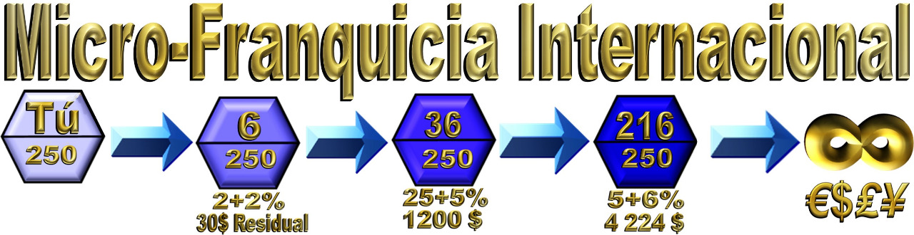 Tu trabajo consiste en consumir, para tu bienestar, o vender unos 300 € al mes, y aplicar la fórmula magistral del 6 X 6. Buscar a 6 amigos, familiares, personas de actitud que vendan y/o consuman unos 300 €/mes, y que ellos busquen a 6 más que hagan lo mismo. Y así sucesivamente hasta el infinito.